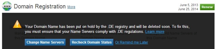 Once you have setup your .DE domain name's Zone correctly, you may click the Recheck Domain Status button in the Order Information view to confirm the same with the .DE Registry.