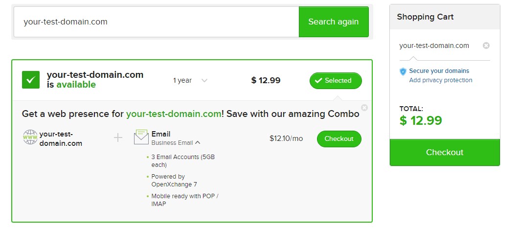 If you have chosen to upsell a Combo Plan, the Upsell Modal will be displayed to the customer only if they select a TLD available with the Combo Plan.