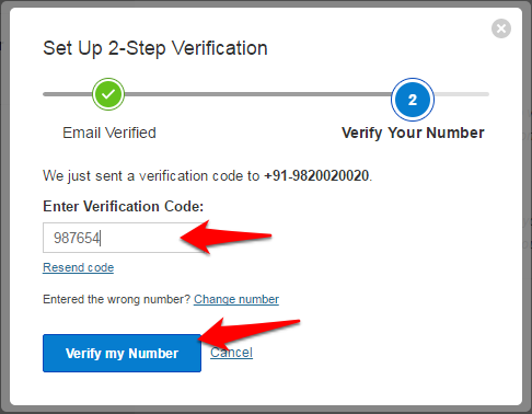 Enter the code in the provided field and click on Verify my Number to complete the phone verification.