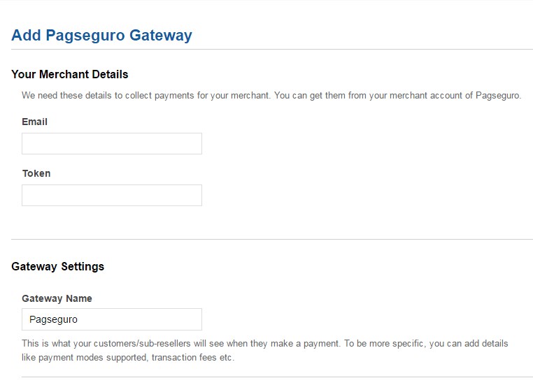 Adding a PagSeguro Gateway in your Reseller Account