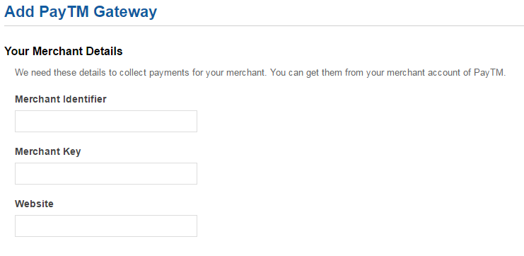 You will need to know your PayTM Merchant Identifier, Merchant Key and Website, to add this payment gateway in your Reseller Account. These details are accessible from your PayTM Merchant Account.
