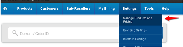 • In the Menu, click on Settings > Manage Products and Pricing.
