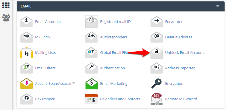 Click on Unblock Email Accounts under the Email section.